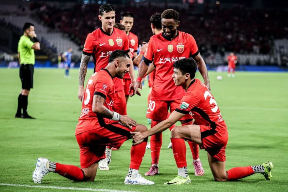 两球落后,主场作战的申花全力反扑。角球造成的门前混战中,陈晋一抓住机会抢射得手,申花追回一城。